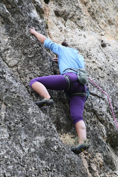 Primul traseu la care ne gandim sa ne facem incalzirea este unu de la grota… imi scapa numele! Destul de lung traseul. Eu cap … hmmm .. refuz sa ma gandesc prea mult. Ma incarc cu bucle, imi iau la mine un zelb .. si sus. Antebratele mi se pompeaza destul de tare … emotiile sunt mari, obosesc s incep sa fac gafa dupa gafa … sus trebuie sa regrupez: cum se regrupeaza?!