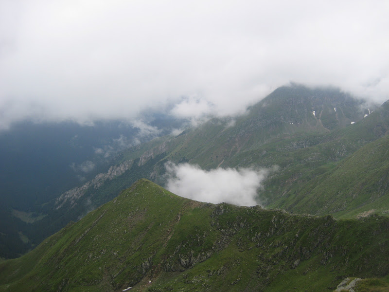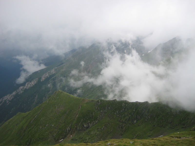 Sergiu si Gabi raman in urma cu aparatul, si de cele mai multe ori, cand ne ajungeau ei din urma se punea ceata pe singura fereastra de peisaj. Imi parea rau ca nu puteam sa fotografiez acele “ocazii”. Pe de alta parte, jocul acesta de nori mi se parea divin. Eu am fost de multe ori la munte, si am vazut de multe ori clar in zare … asa ca jocul norilor nu poate sa mi se para altfel decat superb.