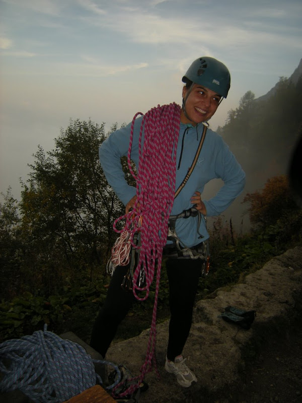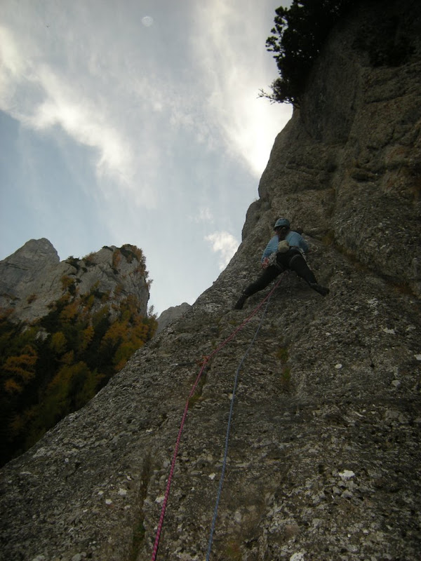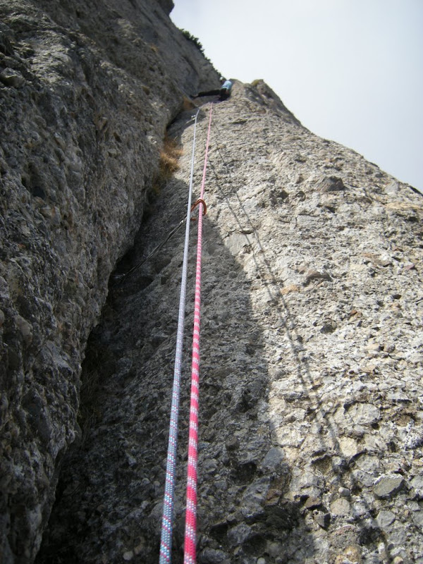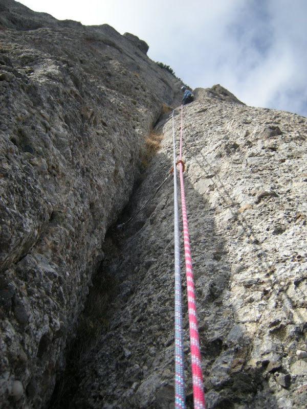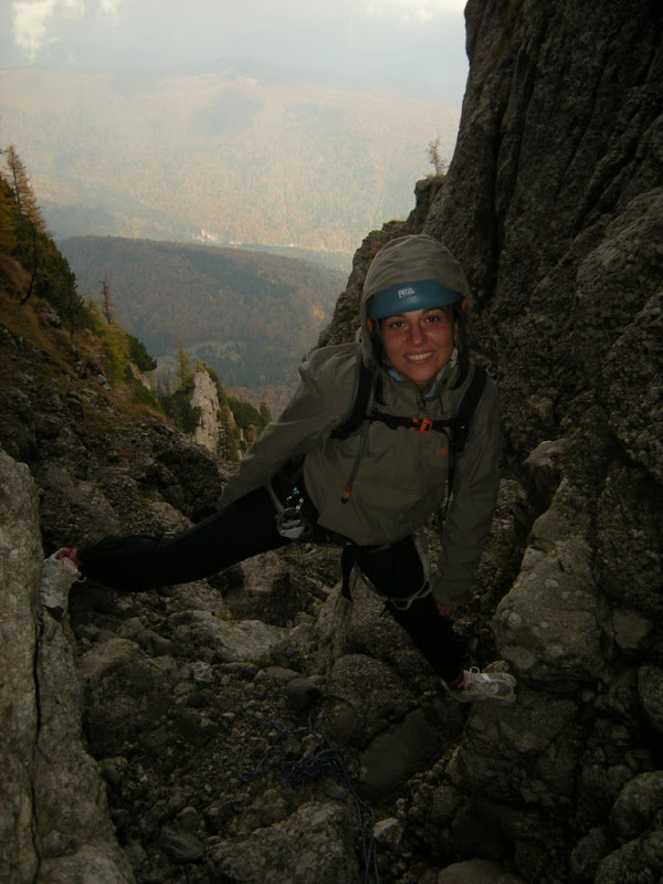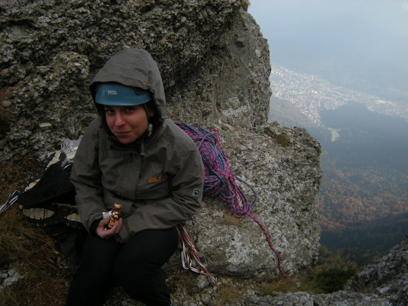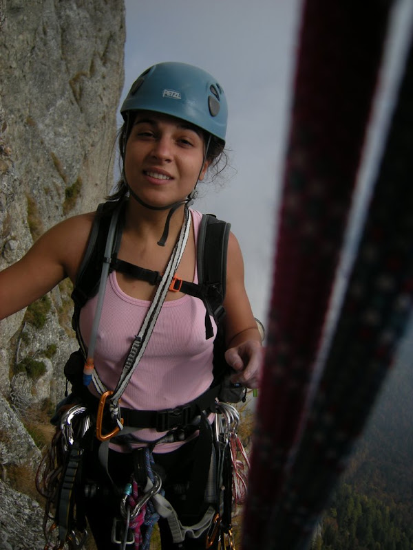 Pe ultima portiune am cam ramas fara asigurari, asa ca am mers destul neasigurata …. Am dat si la artifical – se trece cu vederea avand in vedere ca nu mai sunt antrenata! :)) Oricum, doua lungimi foarte dragute de catarat: diedru, fisura, bavareza … frumos!