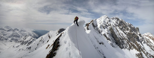 Vantul bate din ce in ce mai violent. Strangem coarda si, dupa ce mai depasim 2-3 obstacole usoare intram in creasta si urcam spre Vf Capra.