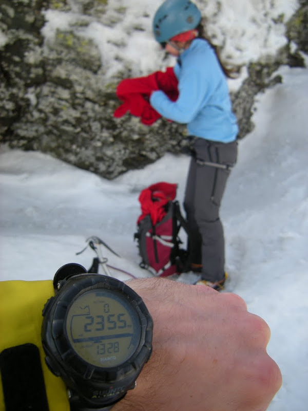 Oochesc din mers o brana de zapada (sper sa tina), si niste fisuri unde as putea sa pun un friend.