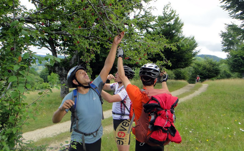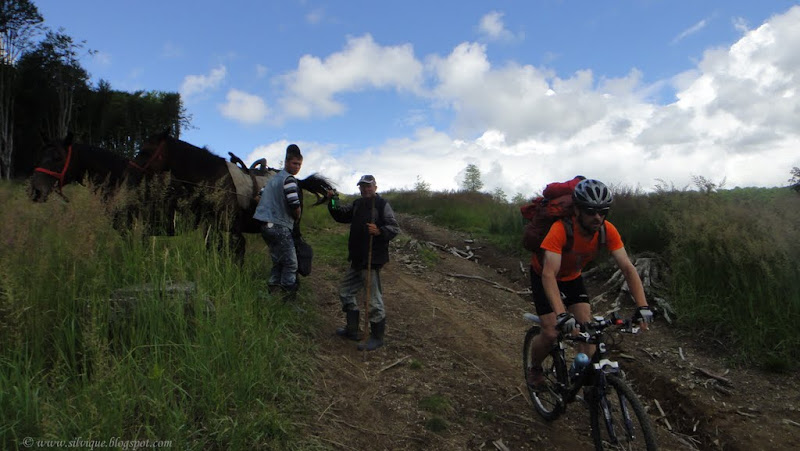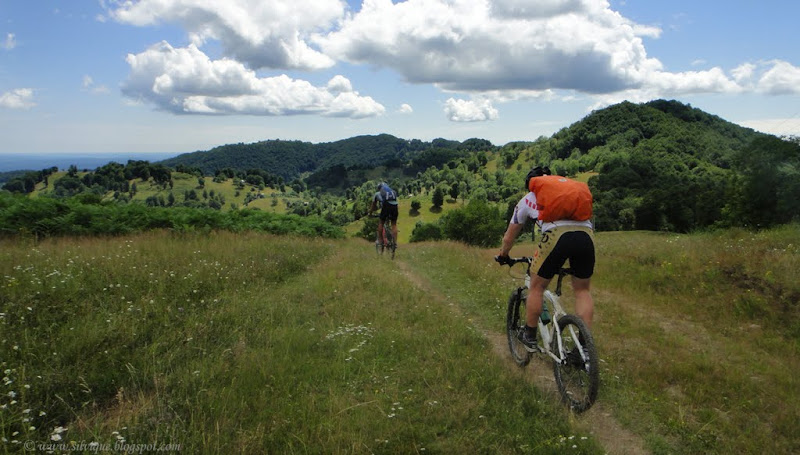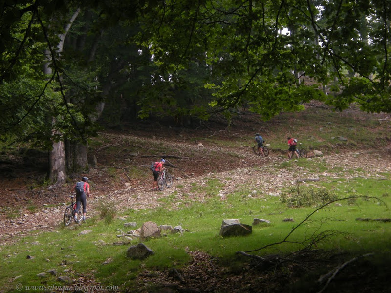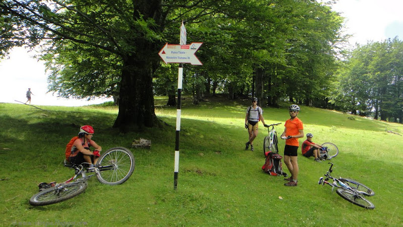 Din pacate eu eram cea care ramanea in urma si incetinea ritmul intregului grup. In primul rand nu ma simteam motivata sa trag mai tare de mine caci in ciuda amenintarii cu ploaie imi doream sa stam cat mai mult timp pe munte, si sa ajungem seara tarziu la locul unde ar fi trebuit sa inoptam. Apoi, chiar daca lumea imi tot spune ca bicicleta mea e de vina ca ma misc asa de greu, eu cred ca nu sunt asa de antrenata ca altii, si ca nu sunt buna la bicicleta … Adica nu vreau sa imi adorm constiinta cu “Daca imi schimb bicicleta o sa fiu mult mai buna!”