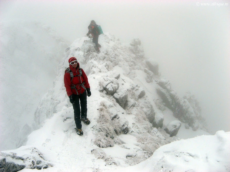 Creasta parea sa fie in ceata. Si, da, pe la jumatatea drumului am intrat si eu in ceata. Sus, la 100m de refugiu m-a luat vantul in primire .. si ceata nu dadea semne ca se va spulbera.