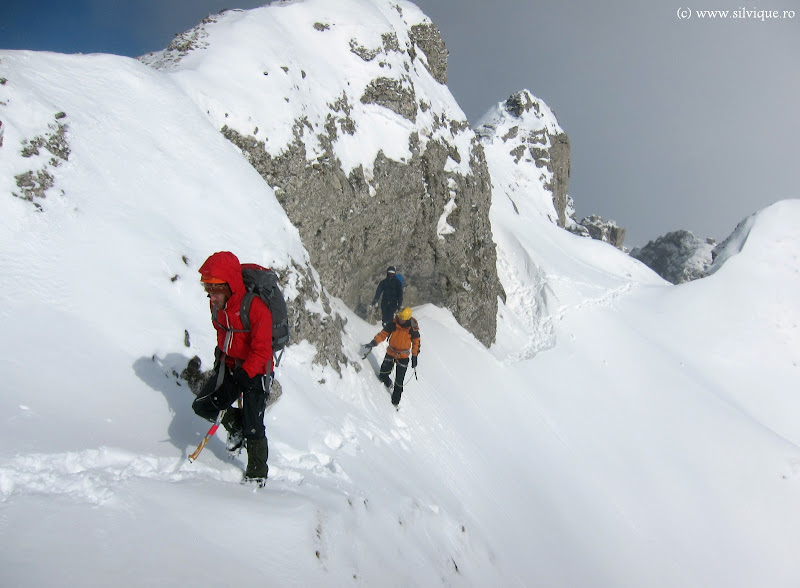 – Mai trebuie traversat! Tin minte ca am mers mult in traversare delicata cu fata spre zapada. Se traverseaza mult! – ii rapund.