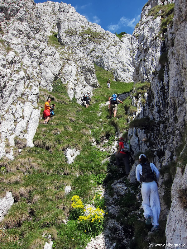 Materiale: o coardă de 40 m, 3 – 4 pitoane, 5 carabiniere. Traseul este nepitonat.