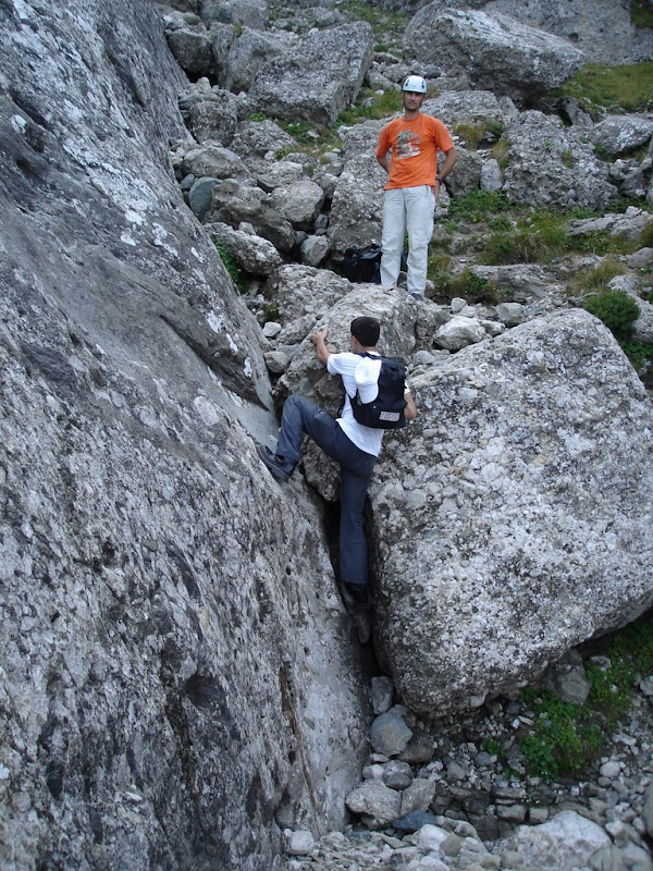 Aici refuz ajutorul unuia din baieti. Cristi ma incurajeaza zicand ca “Daca o cateri si pe asta, te iau pe creasta Malinului!”.