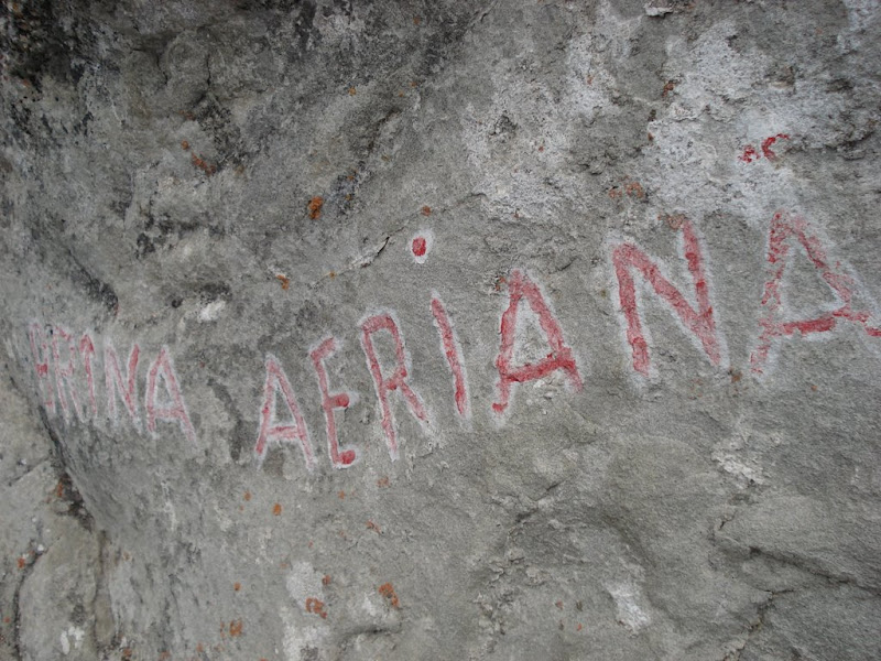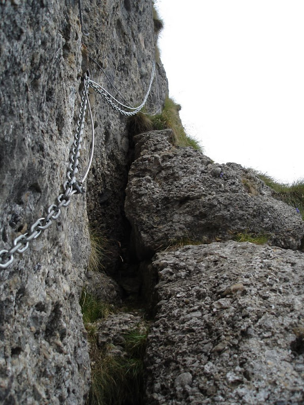 Brana Aeriana este un traseu de retragere din Peretele Vai Albe pentru Alpinisti. Pe vremea aceea nu stiam,si nu intelegeam cum un traseu nemarcat poate fi atat de bine asigurat cu lanturi fixe. Atunci am trecut tinandu-ma de lanturi insa, in viitor cand am mai trecut pe acolo, retragandu-ma din trasee de alpinism, am trecut avand ham pe mine asigurata lasand caraba sa culiseze pe lantul fix. Nu cred ca e asa de riscant sa treci neasigurat, insa un alpinist in retragere este foarte obosit si risca sa faca greseli.