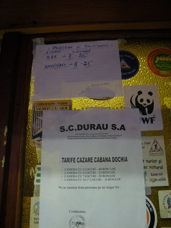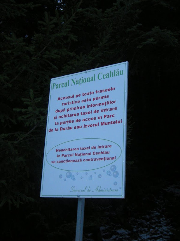 Pe la 15:00 ajungem la cabana Izvorul Muntelui. Intram! Suntem directionati spre o casa verde, micuta, pe care nu scria nimic. Batem la usa si ne deschide un barbat – “da, de la Administratia Parcului Natural”. Ne interesam de trasee, de fapt vroiam sa stim cel mai scurt traseu pana la cabana Dochia, cumparam o harta a Ceahlaului (5RON) si apoi ni se atrage atentia ca trebuie sa platim taxa de intrat in parc (2RON/student sau 5RON/angajat).